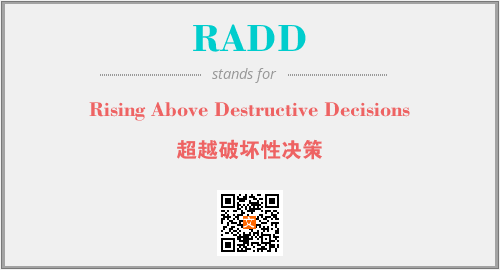 以上为Rising Above Destructive Decisions英文缩略词RADD的中文解释,以及该英文缩写在英语的流行度、分类和应用领域方面的信息。