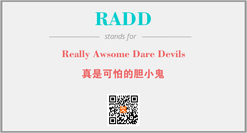 英文缩略词“RADD”经常作为“Really Awsome Dare Devils”的英文缩写来使用,中文表示:“真是可怕的胆小鬼”。本文将详细介绍英文缩写词RADD所代表英文单词,其对应的中文拼音、详细解释以及在英语中的流行度。此外,还有关于缩略词RADD的分类、应用领域及相关应用示例等。