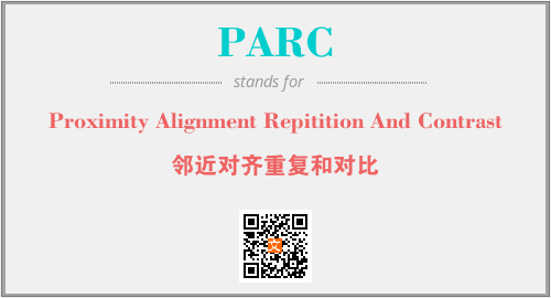 上述内容是“Proximity Alignment Repitition And Contrast”作为“PARC”的缩写,解释为“邻近对齐重复和对比”时的信息,以及英文缩略词PARC所代表的英文单词,其对应的中文拼音、详细解释以及在英文中的流行度和相关分类、应用领域及应用示例等。