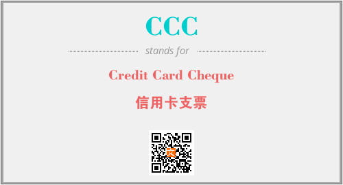 英文缩略词“CCC”经常作为“Credit Card Cheque”的英文缩写来使用,中文表示:“信用卡支票”。本文将详细介绍英文缩写词CCC所代表英文单词,其对应的中文拼音、详细解释以及在英语中的流行度。此外,还有关于缩略词CCC的分类、应用领域及相关应用示例等。