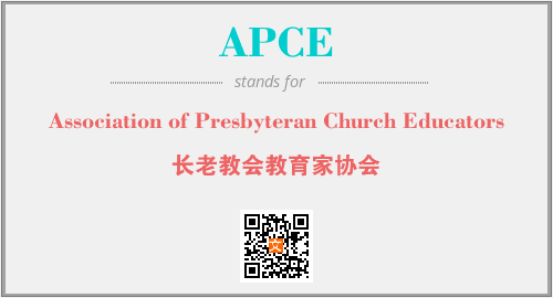 上述内容是“Association of Presbyteran Church Educators”作为“APCE”的缩写,解释为“长老教会教育家协会”时的信息,以及英文缩略词APCE所代表的英文单词,其对应的中文拼音、详细解释以及在英文中的流行度和相关分类、应用领域及应用示例等。