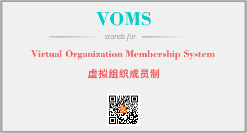 上述内容是“Virtual Organization Membership System”作为“VOMS”的缩写,解释为“虚拟组织成员制”时的信息,以及英文缩略词VOMS所代表的英文单词,其对应的中文拼音、详细解释以及在英文中的流行度和相关分类、应用领域及应用示例等。