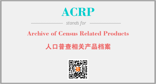 上述内容是“Archive of Census Related Products”作为“ACRP”的缩写,解释为“人口普查相关产品档案”时的信息,以及英文缩略词ACRP所代表的英文单词,其对应的中文拼音、详细解释以及在英文中的流行度和相关分类、应用领域及应用示例等。