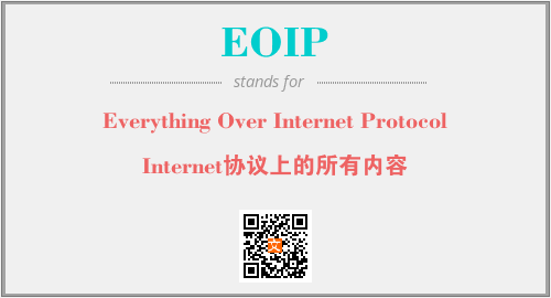 英文缩略词“EOIP”经常作为“Everything Over Internet Protocol”的英文缩写来使用,中文表示:“Internet协议上的所有内容”。本文将详细介绍英文缩写词EOIP所代表英文单词,其对应的中文拼音、详细解释以及在英语中的流行度。此外,还有关于缩略词EOIP的分类、应用领域及相关应用示例等。