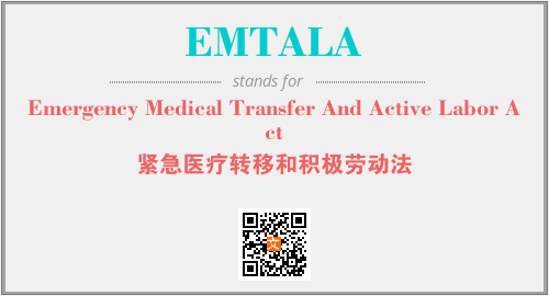 英文缩略词“EMTALA”经常作为“Emergency Medical Transfer And Active Labor Act”的英文缩写来使用,中文表示:“紧急医疗转移和积极劳动法”。本文将详细介绍英文缩写词EMTALA所代表英文单词,其对应的中文拼音、详细解释以及在英语中的流行度。此外,还有关于缩略词EMTALA的分类、应用领域及相关应用示例等。