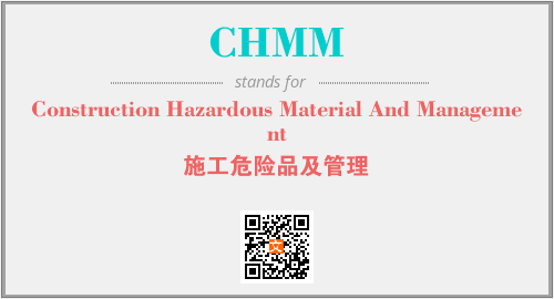 上述内容是“Construction Hazardous Material And Management”作为“CHMM”的缩写,解释为“施工危险品及管理”时的信息,以及英文缩略词CHMM所代表的英文单词,其对应的中文拼音、详细解释以及在英文中的流行度和相关分类、应用领域及应用示例等。
