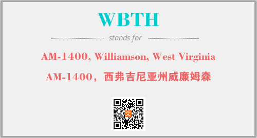 上述内容是“AM-1400, Williamson, West Virginia”作为“WBTH”的缩写,解释为“AM-1400,西弗吉尼亚州威廉姆森”时的信息,以及英文缩略词WBTH所代表的英文单词,其对应的中文拼音、详细解释以及在英文中的流行度和相关分类、应用领域及应用示例等。