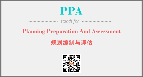 以上为Planning Preparation And Assessment英文缩略词PPA的中文解释,以及该英文缩写在英语的流行度、分类和应用领域方面的信息。