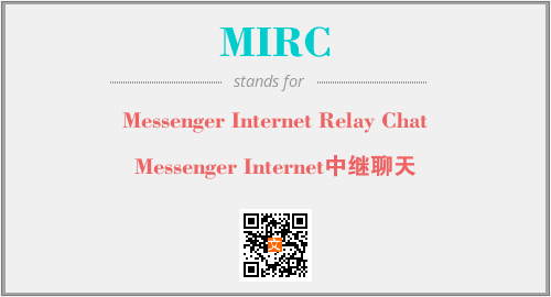 上述内容是“Messenger Internet Relay Chat”作为“MIRC”的缩写,解释为“Messenger Internet中继聊天”时的信息,以及英文缩略词MIRC所代表的英文单词,其对应的中文拼音、详细解释以及在英文中的流行度和相关分类、应用领域及应用示例等。