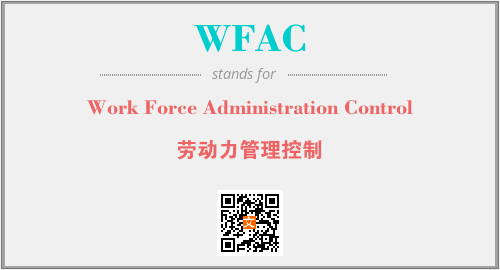英文缩略词“WFAC”经常作为“Work Force Administration Control”的英文缩写来使用,中文表示:“劳动力管理控制”。本文将详细介绍英文缩写词WFAC所代表英文单词,其对应的中文拼音、详细解释以及在英语中的流行度。此外,还有关于缩略词WFAC的分类、应用领域及相关应用示例等。