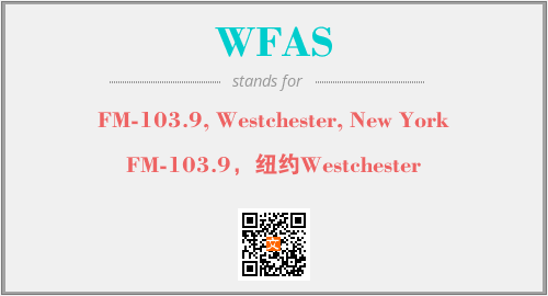 上述内容是“FM-103.9, Westchester, New York”作为“WFAS”的缩写,解释为“FM-103.9,纽约Westchester”时的信息,以及英文缩略词WFAS所代表的英文单词,其对应的中文拼音、详细解释以及在英文中的流行度和相关分类、应用领域及应用示例等。