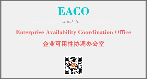 上述内容是“Enterprise Availability Coordination Office”作为“EACO”的缩写,解释为“企业可用性协调办公室”时的信息,以及英文缩略词EACO所代表的英文单词,其对应的中文拼音、详细解释以及在英文中的流行度和相关分类、应用领域及应用示例等。