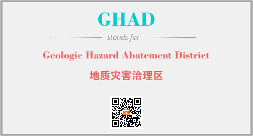 上述内容是“Geologic Hazard Abatement District”作为“GHAD”的缩写,解释为“地质灾害治理区”时的信息,以及英文缩略词GHAD所代表的英文单词,其对应的中文拼音、详细解释以及在英文中的流行度和相关分类、应用领域及应用示例等。