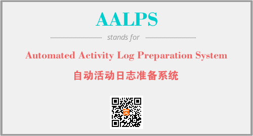 上述内容是“Automated Activity Log Preparation System”作为“AALPS”的缩写,解释为“自动活动日志准备系统”时的信息,以及英文缩略词AALPS所代表的英文单词,其对应的中文拼音、详细解释以及在英文中的流行度和相关分类、应用领域及应用示例等。