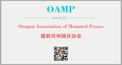上述内容是“Oregon Association of Mounted Posses”作为“OAMP”的缩写,解释为“俄勒冈州骑兵协会”时的信息,以及英文缩略词OAMP所代表的英文单词,其对应的中文拼音、详细解释以及在英文中的流行度和相关分类、应用领域及应用示例等。