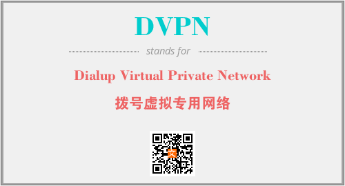 英文缩略词“DVPN”经常作为“Dialup Virtual Private Network”的英文缩写来使用,中文表示:“拨号虚拟专用网络”。本文将详细介绍英文缩写词DVPN所代表英文单词,其对应的中文拼音、详细解释以及在英语中的流行度。此外,还有关于缩略词DVPN的分类、应用领域及相关应用示例等。