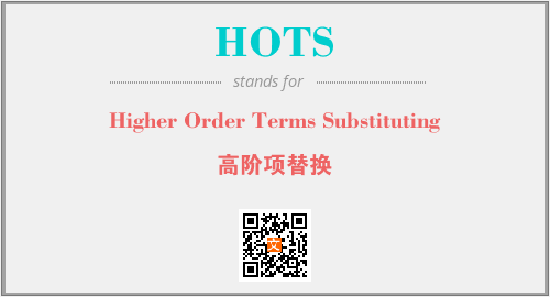 上述内容是“Higher Order Terms Substituting”作为“HOTS”的缩写,解释为“高阶项替换”时的信息,以及英文缩略词HOTS所代表的英文单词,其对应的中文拼音、详细解释以及在英文中的流行度和相关分类、应用领域及应用示例等。