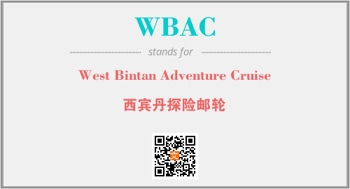 上述内容是“West Bintan Adventure Cruise”作为“WBAC”的缩写,解释为“西宾丹探险邮轮”时的信息,以及英文缩略词WBAC所代表的英文单词,其对应的中文拼音、详细解释以及在英文中的流行度和相关分类、应用领域及应用示例等。