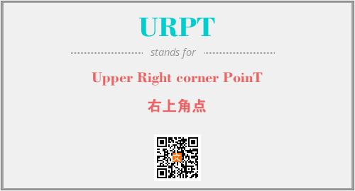 上述内容是“Upper Right corner PoinT”作为“URPT”的缩写,解释为“右上角点”时的信息,以及英文缩略词URPT所代表的英文单词,其对应的中文拼音、详细解释以及在英文中的流行度和相关分类、应用领域及应用示例等。
