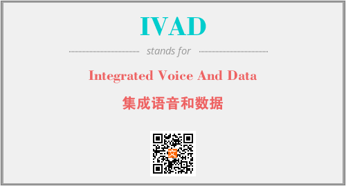 英文缩略词“IVAD”经常作为“Integrated Voice And Data”的英文缩写来使用,中文表示:“集成语音和数据”。本文将详细介绍英文缩写词IVAD所代表英文单词,其对应的中文拼音、详细解释以及在英语中的流行度。此外,还有关于缩略词IVAD的分类、应用领域及相关应用示例等。