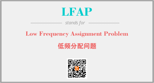 英文缩略词“LFAP”经常作为“Low Frequency Assignment Problem”的英文缩写来使用,中文表示:“低频分配问题”。本文将详细介绍英文缩写词LFAP所代表英文单词,其对应的中文拼音、详细解释以及在英语中的流行度。此外,还有关于缩略词LFAP的分类、应用领域及相关应用示例等。