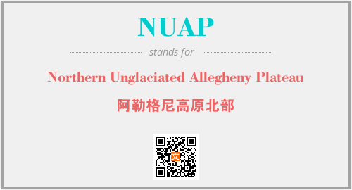 上述内容是“Northern Unglaciated Allegheny Plateau”作为“NUAP”的缩写,解释为“阿勒格尼高原北部”时的信息,以及英文缩略词NUAP所代表的英文单词,其对应的中文拼音、详细解释以及在英文中的流行度和相关分类、应用领域及应用示例等。