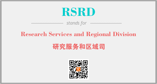 上述内容是“Research Services and Regional Division”作为“RSRD”的缩写,解释为“研究服务和区域司”时的信息,以及英文缩略词RSRD所代表的英文单词,其对应的中文拼音、详细解释以及在英文中的流行度和相关分类、应用领域及应用示例等。