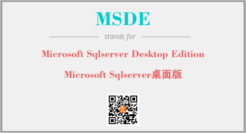 英文缩略词“MSDE”经常作为“Microsoft Sqlserver Desktop Edition”的英文缩写来使用,中文表示:“Microsoft Sqlserver桌面版”。本文将详细介绍英文缩写词MSDE所代表英文单词,其对应的中文拼音、详细解释以及在英语中的流行度。此外,还有关于缩略词MSDE的分类、应用领域及相关应用示例等。