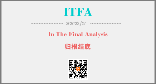 上述内容是“In The Final Analysis”作为“ITFA”的缩写,解释为“归根结底”时的信息,以及英文缩略词ITFA所代表的英文单词,其对应的中文拼音、详细解释以及在英文中的流行度和相关分类、应用领域及应用示例等。