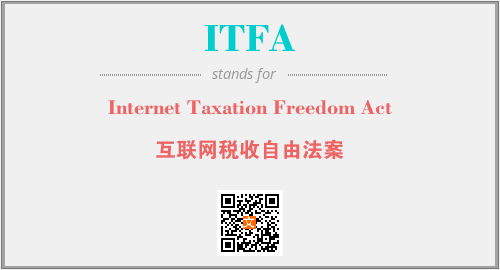 上述内容是“Internet Taxation Freedom Act”作为“ITFA”的缩写,解释为“互联网税收自由法案”时的信息,以及英文缩略词ITFA所代表的英文单词,其对应的中文拼音、详细解释以及在英文中的流行度和相关分类、应用领域及应用示例等。