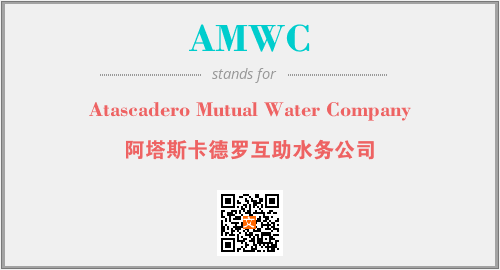 上述内容是“Atascadero Mutual Water Company”作为“AMWC”的缩写,解释为“阿塔斯卡德罗互助水务公司”时的信息,以及英文缩略词AMWC所代表的英文单词,其对应的中文拼音、详细解释以及在英文中的流行度和相关分类、应用领域及应用示例等。