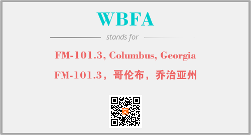 上述内容是“FM-101.3, Columbus, Georgia”作为“WBFA”的缩写,解释为“FM-101.3,哥伦布,乔治亚州”时的信息,以及英文缩略词WBFA所代表的英文单词,其对应的中文拼音、详细解释以及在英文中的流行度和相关分类、应用领域及应用示例等。