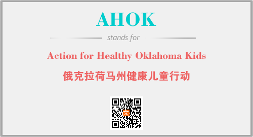 上述内容是“Action for Healthy Oklahoma Kids”作为“AHOK”的缩写,解释为“俄克拉荷马州健康儿童行动”时的信息,以及英文缩略词AHOK所代表的英文单词,其对应的中文拼音、详细解释以及在英文中的流行度和相关分类、应用领域及应用示例等。