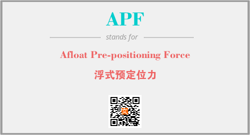 上述内容是“Afloat Pre-positioning Force”作为“APF”的缩写,解释为“浮式预定位力”时的信息,以及英文缩略词APF所代表的英文单词,其对应的中文拼音、详细解释以及在英文中的流行度和相关分类、应用领域及应用示例等。