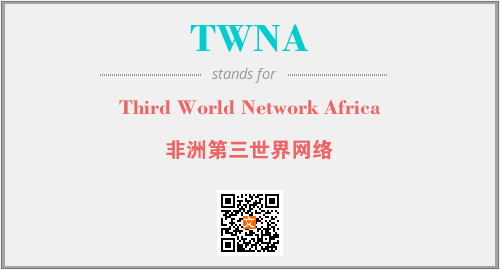 上述内容是“Third World Network Africa”作为“TWNA”的缩写,解释为“非洲第三世界网络”时的信息,以及英文缩略词TWNA所代表的英文单词,其对应的中文拼音、详细解释以及在英文中的流行度和相关分类、应用领域及应用示例等。