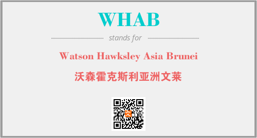 上述内容是“Watson Hawksley Asia Brunei”作为“WHAB”的缩写,解释为“沃森霍克斯利亚洲文莱”时的信息,以及英文缩略词WHAB所代表的英文单词,其对应的中文拼音、详细解释以及在英文中的流行度和相关分类、应用领域及应用示例等。