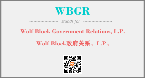 上述内容是“Wolf Block Government Relations, L.P.”作为“WBGR”的缩写,解释为“Wolf Block政府关系,L.P。”时的信息,以及英文缩略词WBGR所代表的英文单词,其对应的中文拼音、详细解释以及在英文中的流行度和相关分类、应用领域及应用示例等。