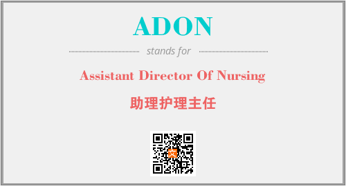 英文缩略词“ADON”经常作为“Assistant Director Of Nursing”的英文缩写来使用,中文表示:“助理护理主任”。本文将详细介绍英文缩写词ADON所代表英文单词,其对应的中文拼音、详细解释以及在英语中的流行度。此外,还有关于缩略词ADON的分类、应用领域及相关应用示例等。