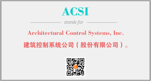 上述内容是“Architectural Control Systems, Inc.”作为“ACSI”的缩写,解释为“建筑控制系统公司(股份有限公司)。”时的信息,以及英文缩略词ACSI所代表的英文单词,其对应的中文拼音、详细解释以及在英文中的流行度和相关分类、应用领域及应用示例等。