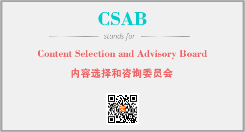英文缩略词“CSAB”经常作为“Content Selection and Advisory Board”的英文缩写来使用,中文表示:“内容选择和咨询委员会”。本文将详细介绍英文缩写词CSAB所代表英文单词,其对应的中文拼音、详细解释以及在英语中的流行度。此外,还有关于缩略词CSAB的分类、应用领域及相关应用示例等。