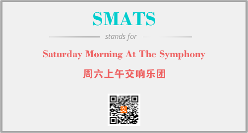 英文缩略词“SMATS”经常作为“Saturday Morning At The Symphony”的英文缩写来使用,中文表示:“周六上午交响乐团”。本文将详细介绍英文缩写词SMATS所代表英文单词,其对应的中文拼音、详细解释以及在英语中的流行度。此外,还有关于缩略词SMATS的分类、应用领域及相关应用示例等。