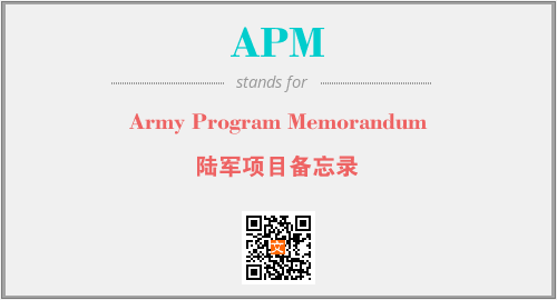 英文缩略词“APM”经常作为“Army Program Memorandum”的英文缩写来使用,中文表示:“陆军项目备忘录”。本文将详细介绍英文缩写词APM所代表英文单词,其对应的中文拼音、详细解释以及在英语中的流行度。此外,还有关于缩略词APM的分类、应用领域及相关应用示例等。
