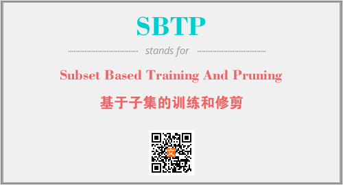 上述内容是“Subset Based Training And Pruning”作为“SBTP”的缩写,解释为“基于子集的训练和修剪”时的信息,以及英文缩略词SBTP所代表的英文单词,其对应的中文拼音、详细解释以及在英文中的流行度和相关分类、应用领域及应用示例等。