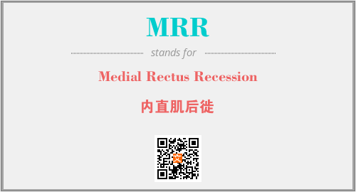 以上为Medial Rectus Recession英文缩略词MRR的中文解释,以及该英文缩写在英语的流行度、分类和应用领域方面的信息。