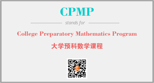 英文缩略词“CPMP”经常作为“College Preparatory Mathematics Program”的英文缩写来使用,中文表示:“大学预科数学课程”。本文将详细介绍英文缩写词CPMP所代表英文单词,其对应的中文拼音、详细解释以及在英语中的流行度。此外,还有关于缩略词CPMP的分类、应用领域及相关应用示例等。