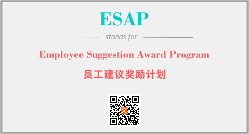 以上为Employee Suggestion Award Program英文缩略词ESAP的中文解释,以及该英文缩写在英语的流行度、分类和应用领域方面的信息。