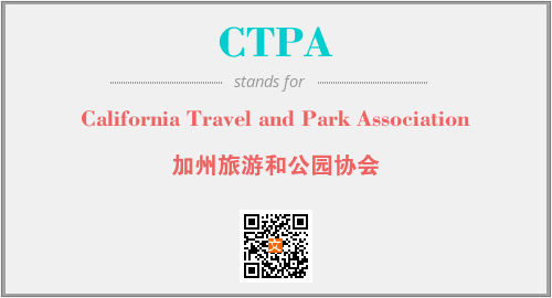 上述内容是“California Travel and Park Association”作为“CTPA”的缩写,解释为“加州旅游和公园协会”时的信息,以及英文缩略词CTPA所代表的英文单词,其对应的中文拼音、详细解释以及在英文中的流行度和相关分类、应用领域及应用示例等。