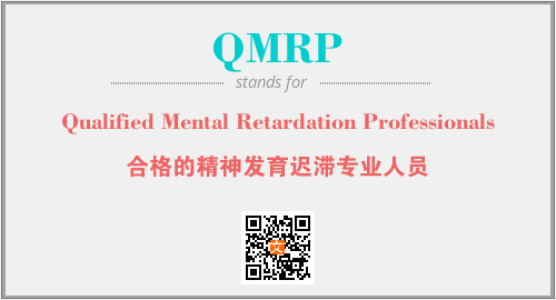上述内容是“Qualified Mental Retardation Professionals”作为“QMRP”的缩写,解释为“合格的精神发育迟滞专业人员”时的信息,以及英文缩略词QMRP所代表的英文单词,其对应的中文拼音、详细解释以及在英文中的流行度和相关分类、应用领域及应用示例等。