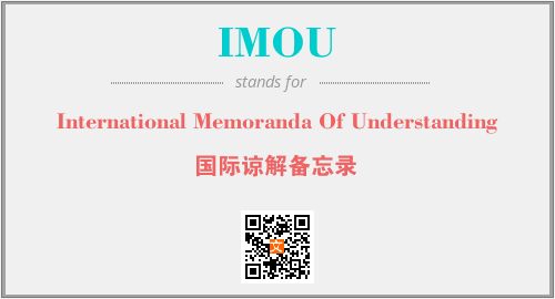 上述内容是“International Memoranda Of Understanding”作为“IMOU”的缩写,解释为“国际谅解备忘录”时的信息,以及英文缩略词IMOU所代表的英文单词,其对应的中文拼音、详细解释以及在英文中的流行度和相关分类、应用领域及应用示例等。