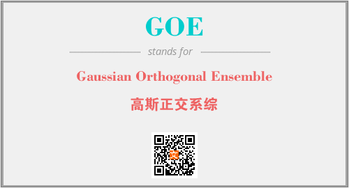 英文缩略词“GOE”经常作为“Gaussian Orthogonal Ensemble”的英文缩写来使用,中文表示:“高斯正交系综”。本文将详细介绍英文缩写词GOE所代表英文单词,其对应的中文拼音、详细解释以及在英语中的流行度。此外,还有关于缩略词GOE的分类、应用领域及相关应用示例等。